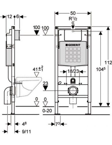 Bâti-support Geberit Duofix et sa plaque de déclenchement à associer à un pack cuvette suspendue + abattant.