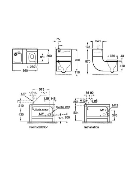 -Respect de l'environnement: une économie d'eau de 25% peut être réalisée par rapport à l'utilisation d'un lavabo associé à un WC traditionnel ( 3 à 6 litres)