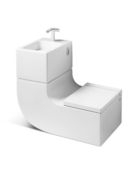 WC intégrant un lave-main au dessus du réservoir de chasse d'eau.