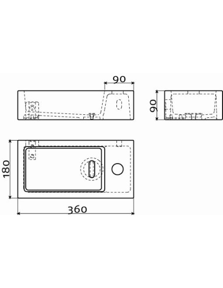 Lave-main Flush 3 en céramique de 18cm de profondeur,